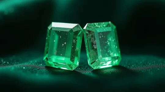 Las esmeraldas son variedades de berilo coloreadas por cromo y vanadio. A diferencia de los diamantes, las inclusiones (llamadas «jardín») se consideran normales e incluso prueban su origen natural. Las esmeraldas colombianas son referencia mundial, pero Zambia y Brasil también producen gemas de alta calidad. Debido a su estructura interna, son más frágiles que otras piedras preciosas y requieren especial cuidado.